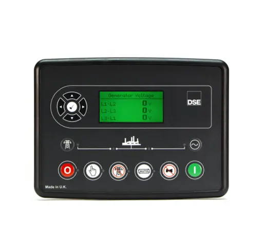 El DSE6120 es un módulo de control de fallos de red para generadores diésel o de gas, que supervisa numerosos parámetros del motor y muestra estados, alarmas y apagados en pantalla, LEDs y PC remoto.